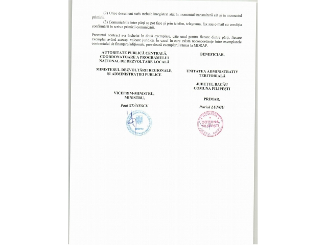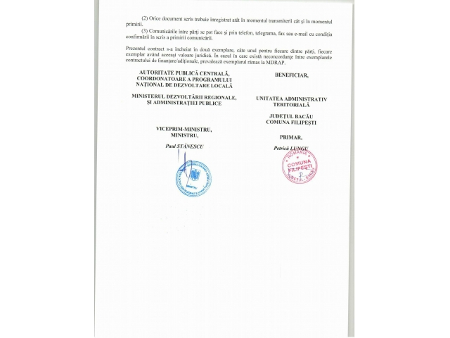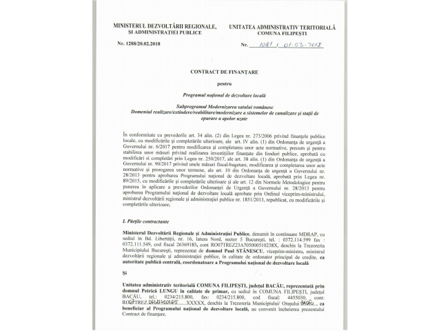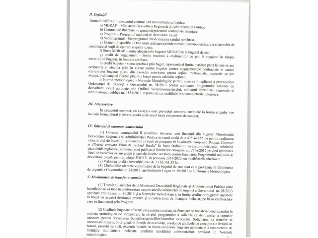 • Canalizare și stații de pompare în localitățile Onișcani, Boanța, Cornești și Hîrlești comuna Filipești, județul Bacău