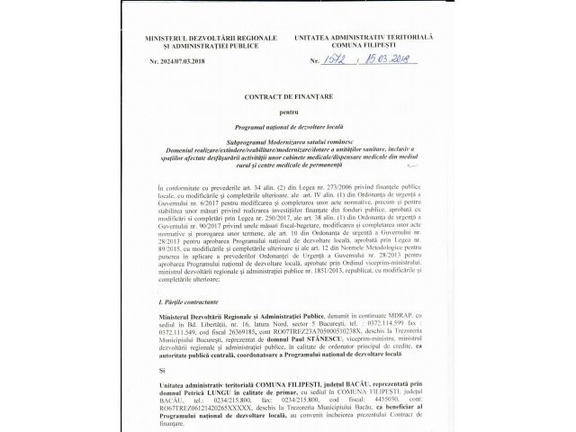 • Construire Dispensar în sat Filipești, comuna Filipești, județul Bacău